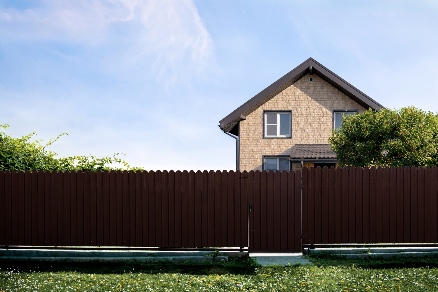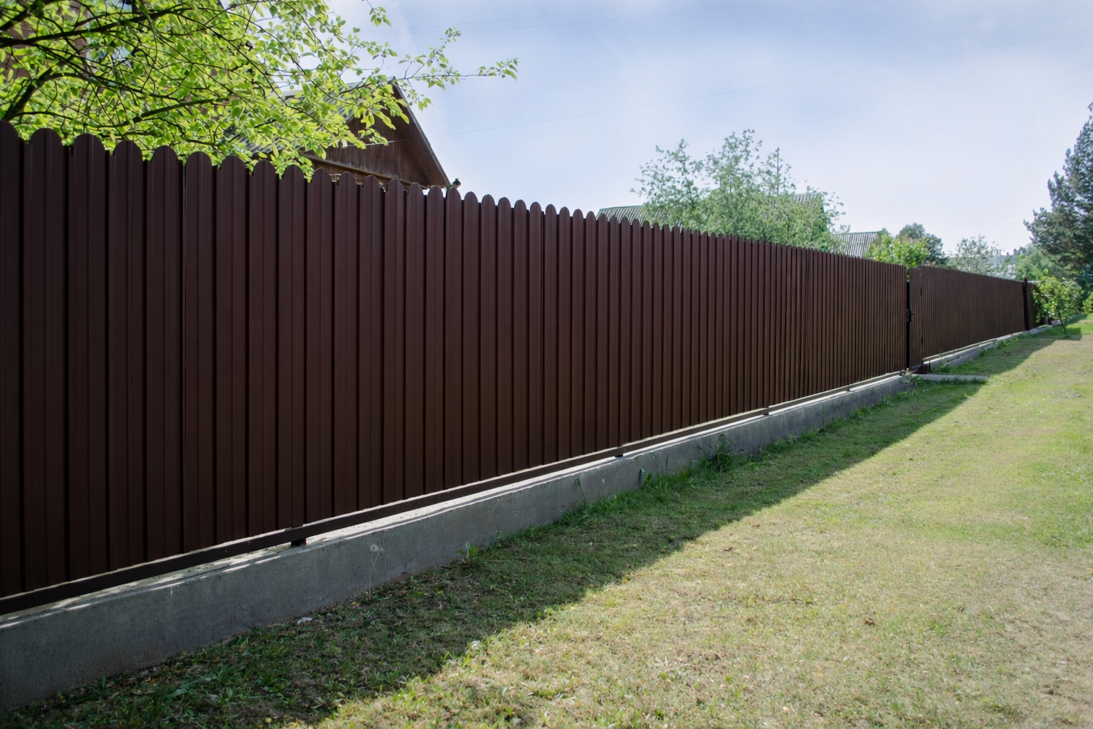 Профнастил C10 с фигурной кромкой имитирует классический русский деревянный забор. Декоративная вырубка по верхнему краю листа позволяет возвести надежное, экономичное и привлекательное ограждение. Производится в покрытиях Grand Line и Optima. Высота профиля позволяет использовать профнастил для облицовки фасадов, возведения ограждений и в качестве кровельного материала для небольших кровель (крыльцо, беседки).